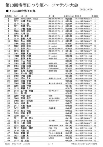 Read More → 湊酒田つや姫ハーフマラソン大会アンケート抽選結果第11回湊酒田つや姫ハーフマラソン大会アンケート抽選結果を公開しました。 ご当選された皆さま!おめでとうございます! 当選景品は順次発送いたします。抽選結果はこちらFacebookX 2024-10-20
