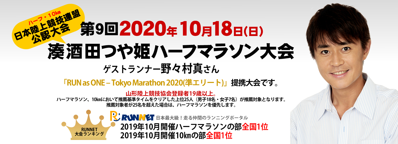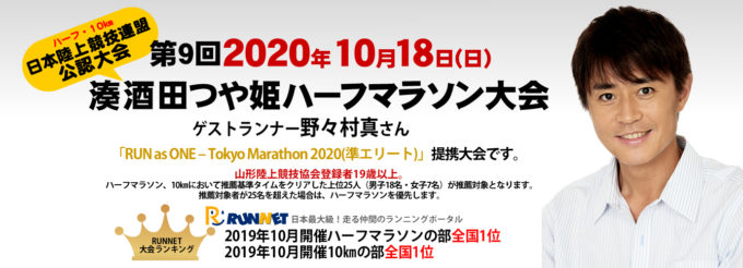 Read More → 第11回湊酒田つや姫ハーフマラソン大会結果第11回湊酒田つや姫ハーフマラソン大会結果を公開しました。 ランナーの皆さん大変お疲れさまでした。 今後とも「湊酒田つや姫ハーフマラソン大会」をどうぞよろしくお願いします☺大会結果はこちらFacebookX 2020-03-31