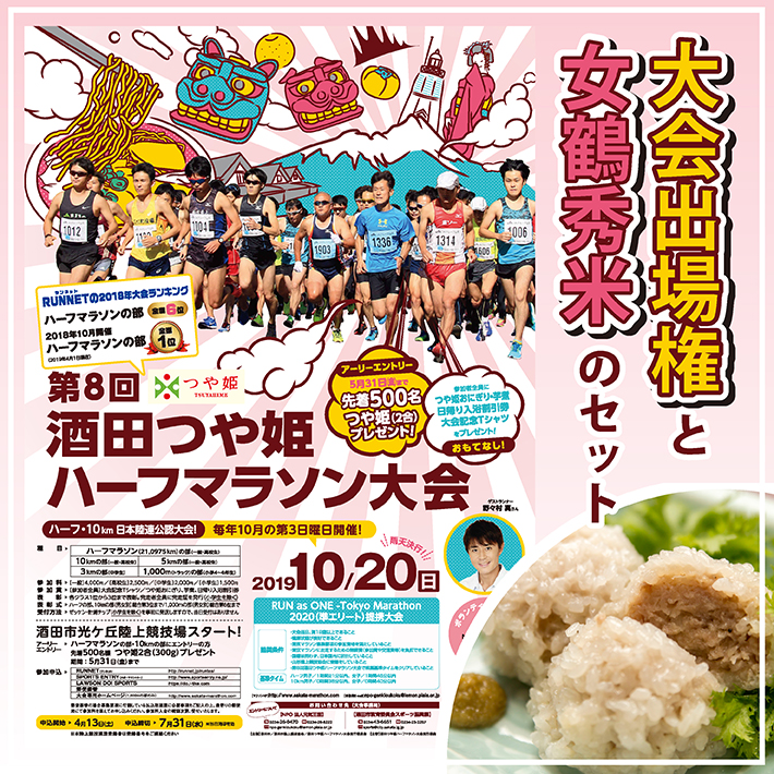 Read More → 第11回湊酒田つや姫ハーフマラソン大会結果第11回湊酒田つや姫ハーフマラソン大会結果を公開しました。 ランナーの皆さん大変お疲れさまでした。 今後とも「湊酒田つや姫ハーフマラソン大会」をどうぞよろしくお願いします☺大会結果はこちらFacebookX 2019-05-08
