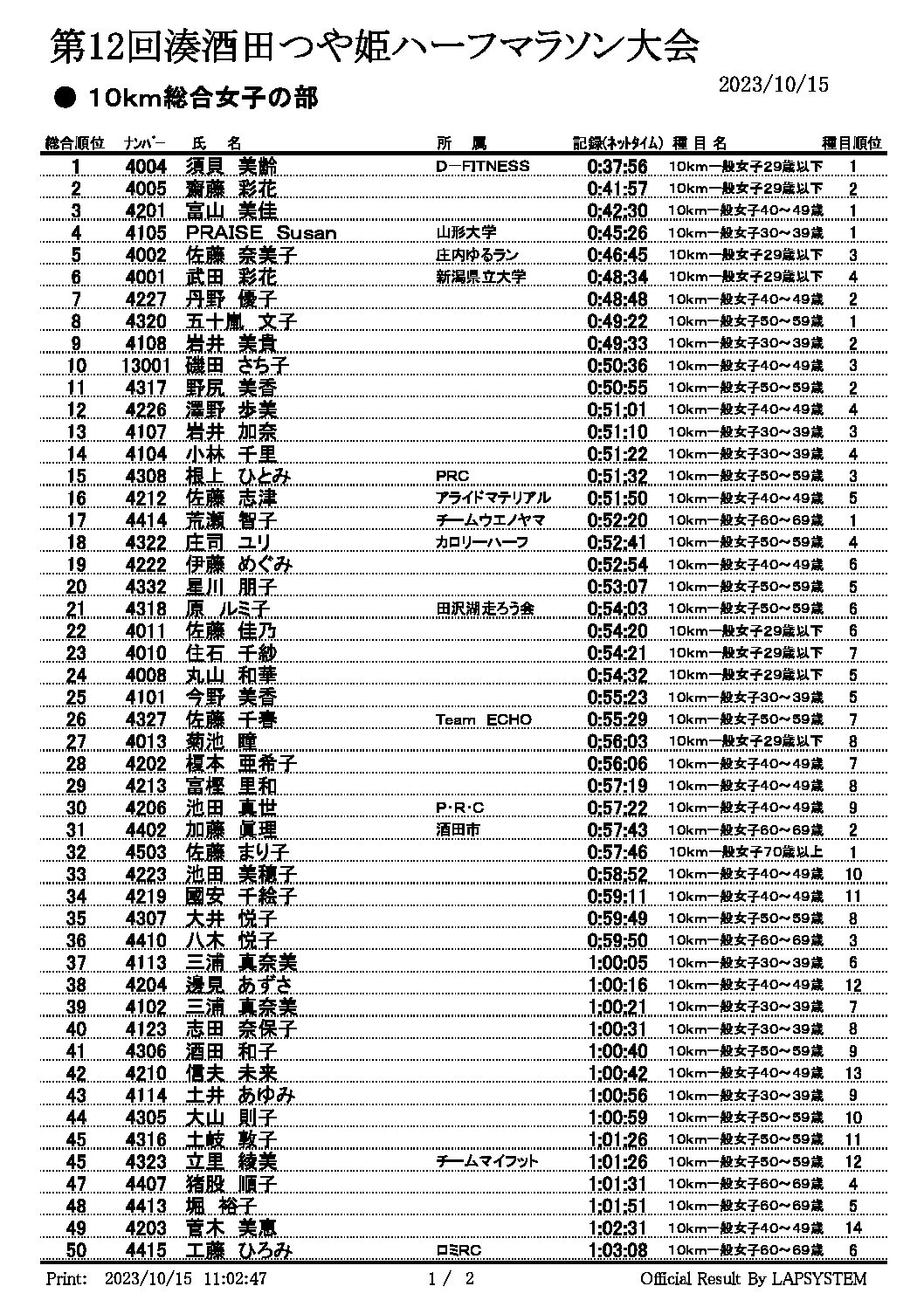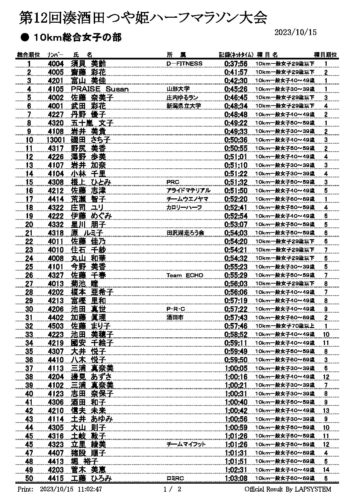 ・ハーフマラソン女子速報(PDF)を公開しました。