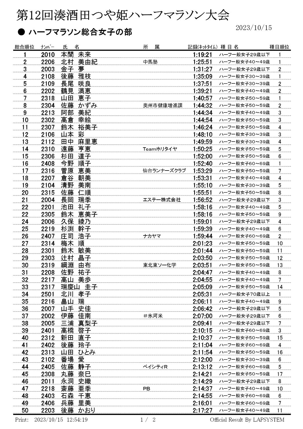 Read More → 第11回湊酒田つや姫ハーフマラソン大会結果第11回湊酒田つや姫ハーフマラソン大会結果を公開しました。 ランナーの皆さん大変お疲れさまでした。 今後とも「湊酒田つや姫ハーフマラソン大会」をどうぞよろしくお願いします☺大会結果はこちらFacebookX 2024-10-18
